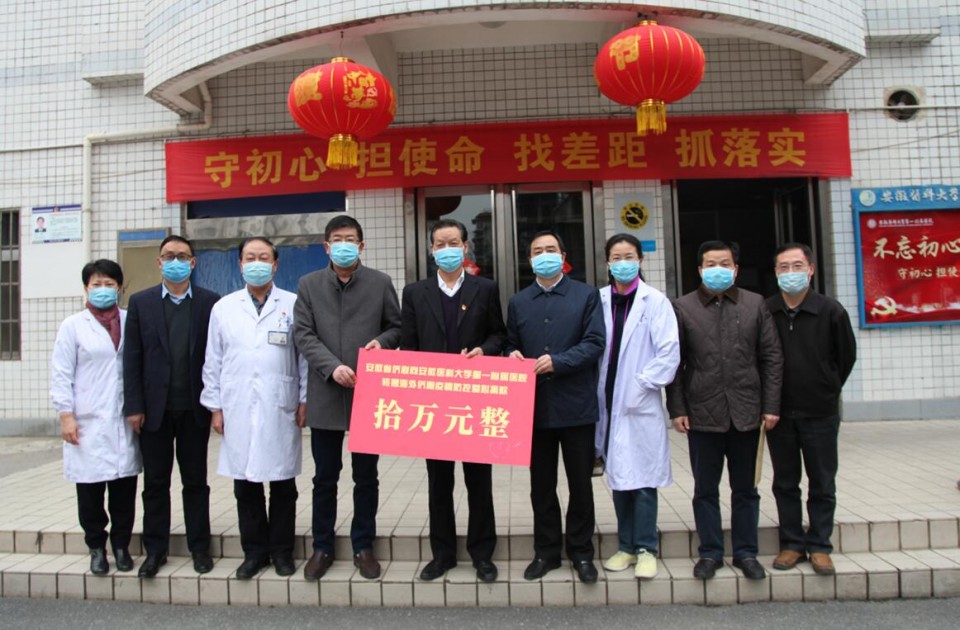 2月27日下午,安徽省侨联向我院转赠海外侨胞疫情防控爱心捐款仪式在我院举行。医院党委书记金宗祥和相关部门负责同志参加了捐赠仪式。安徽省侨联党组书记李世蕴,党组成员、副主席兼秘书长杨冰及机关有关部室负责同志赴医院,转赠海外侨胞爱心捐款10万元,用于支持医院新冠肺炎疫情防控工作,转达海内外侨界对奋战在防控一线同志们的关爱。