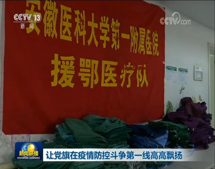2月28日晚,中央电视台《新闻联播》以《让党旗在疫情防控斗争第一线高高飘扬》为题聚焦报道了安徽医科大学第一附属医院第五批(安徽省第四批)支援湖北医疗队党员冲锋在前的先进事迹。