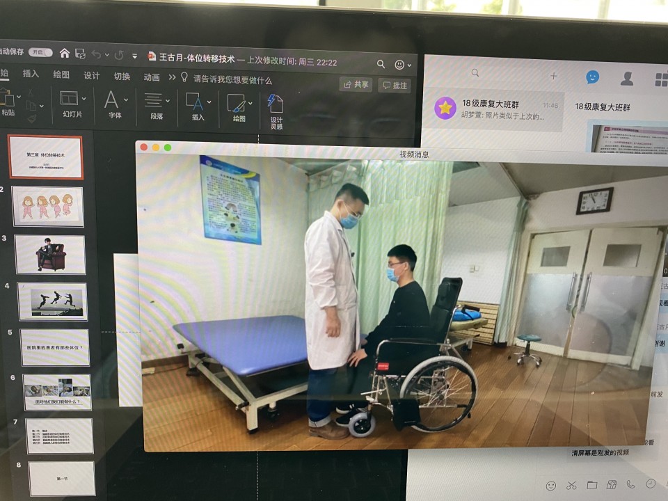 “本次授课对象是2018级康复治疗学专业的学生,他们将来会成为具有较高综合素质的康复治疗师,而非临床医师,实验课对他们来说太重要了!”匆匆赶到教育处办公室了解实验课线上教学要求的康复医学教研室副主任陈和木急切地说。康复医学教研室本学期共有3个年级,16个小班的课程,最让陈和木主任放心不下的是2018级的2个小班,因为2018级康复治疗学专业的学生本学期有一半课是实验课,对于康复治疗师来说,学到了扎实的治疗技术才是取到了“真经”。