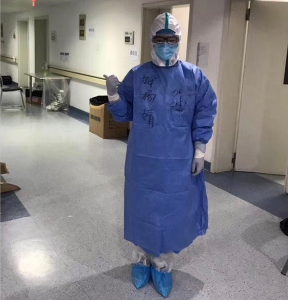 解杨婧,侨眷,中共党员,心内科主治医师,海归博士,爱人也是医生,孩子年幼,积极报名参加了我院第四批援助湖北医疗队。经过一系列安全培训后,她开始了新的挑战,在重症隔离病房,穿着防护服和纸尿裤紧张的工作着,所在病区12个小时内就收满了60位新冠肺炎患者,她和队友们及时完成病历记录、疫情上报等工作。每天都有惊心动魄的抢救。解杨婧曾多次参与一位92岁高龄老人的抢救,这位老人目前已转危为安,非常感谢安医医疗队员。在抢救中队员们深刻意识到,心血管专业虽然不是抗疫的直接关联科室,但在重症病区有超过1/3的患者存在心血管系统合并症。这些合并症在感染新冠肺炎情况下,可能导致心肌炎症、心肌病等,并引起心功能的改变,甚至猝死。解杨婧在完成本职工作的同时加班加点,在医疗队长张泓副院长的带领和王昌会主任的指导下,她对住院患者的心血管相关问题及时进行分析总结,针对心血管高危风险做出个性化的治疗和管理建议,让各专业知识融会贯通,共同为抗击疫情做贡献!