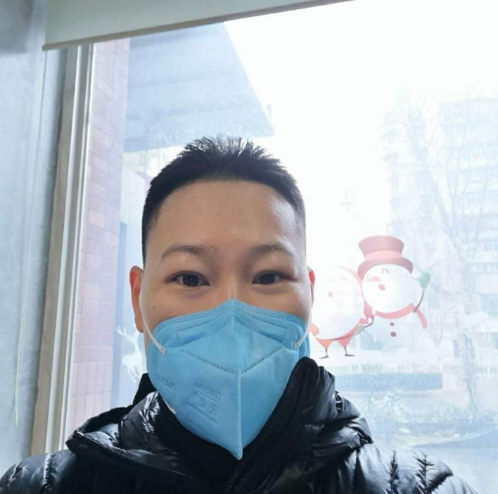 段静思,侨眷,中共党员,党支部组织委员,心脏外科ICU主治医师,博士,爱人是外科医生在外校读博,孩子年幼,积极报名参加了我院第四批援助湖北医疗队。孩子想妈妈的时候,拿着自制“望远镜”期待看到远方的妈妈。在武汉重症病区,为工作方便,段静思把一头秀发剪成了板寸头。ICU承接重症救治,收治患者均为重症,日常工作十分繁忙,她充分发挥了自己专长,工作上应付自如,拿得起扛得住,像个“女汉子”。一次进舱夜班,她收治的一名病重患者一来就反复全身抽搐,严重影响血循环氧合,经过多方视频会诊讨论有气管插管指征。治疗过程中患者出现心跳骤停,段静思及时反应,立即实施胸外按压,联合药物治疗后,患者转危为安。虽然工作繁重,但是这种救死扶伤的成就感和必胜的信念让她坚守“阵地”。除医疗工作外,她还主动承担楼长职责,协助片区物资管理,加入宣传组,利用个人空闲时间,协助医疗队做宣传工作。