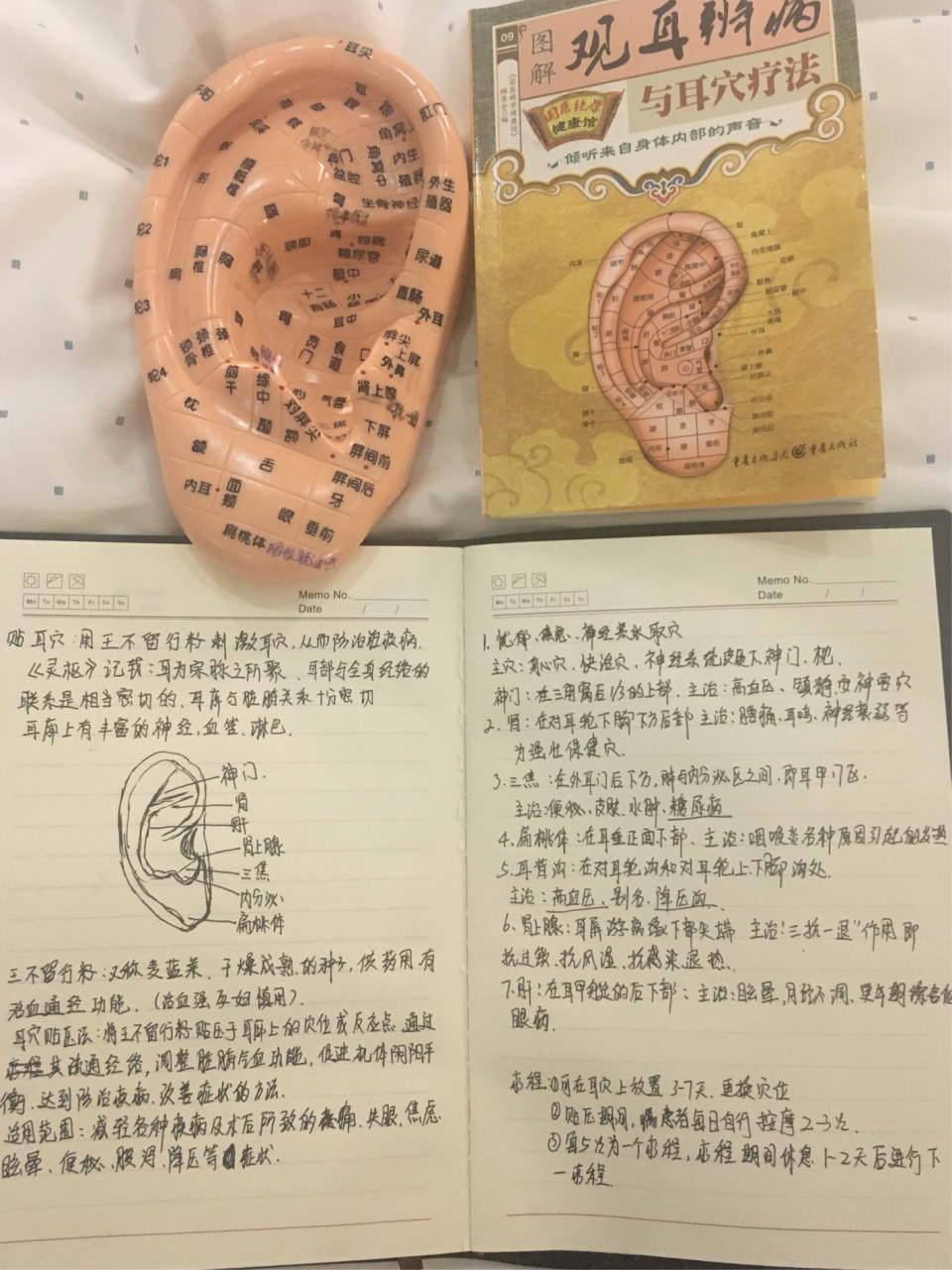 为了让耳穴贴充分发挥作用,朱玉珍利用下班后的每一秒强化学习。远程请教中医科的同事,同时自费买来标有穴位的耳朵模型和王不留行籽,确保穴位按压准确。