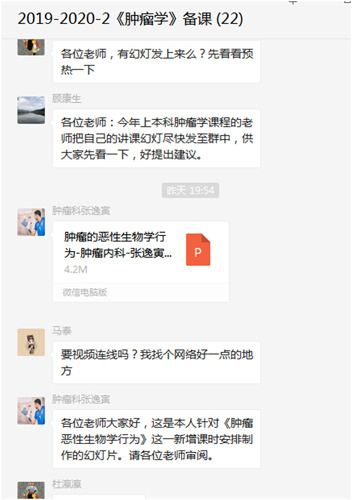 3月1-2日,外科学教研室和肿瘤学教研室分别在各自教研室主任的带领下,利用微信平台组织开展了线上集体备课。