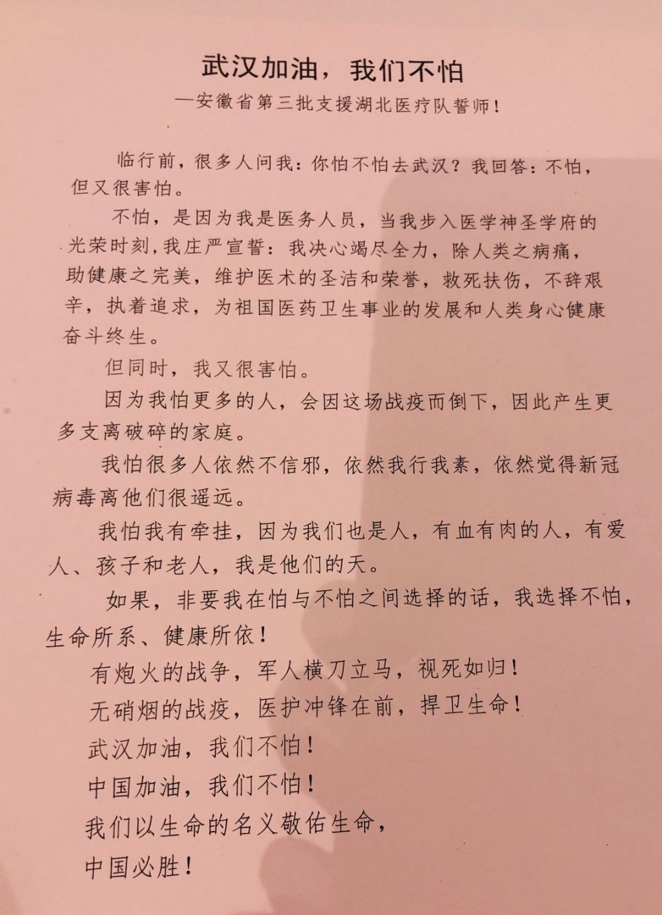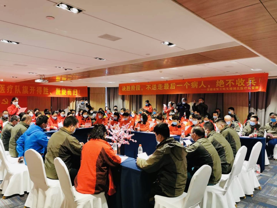 当前唯一的任务就是抢救生命,降低病亡率,提高治愈率。决胜阶段,不送走最后一个病人,绝不收兵!我院第四批(安徽省第三批)支援湖北医疗队再次誓师。
