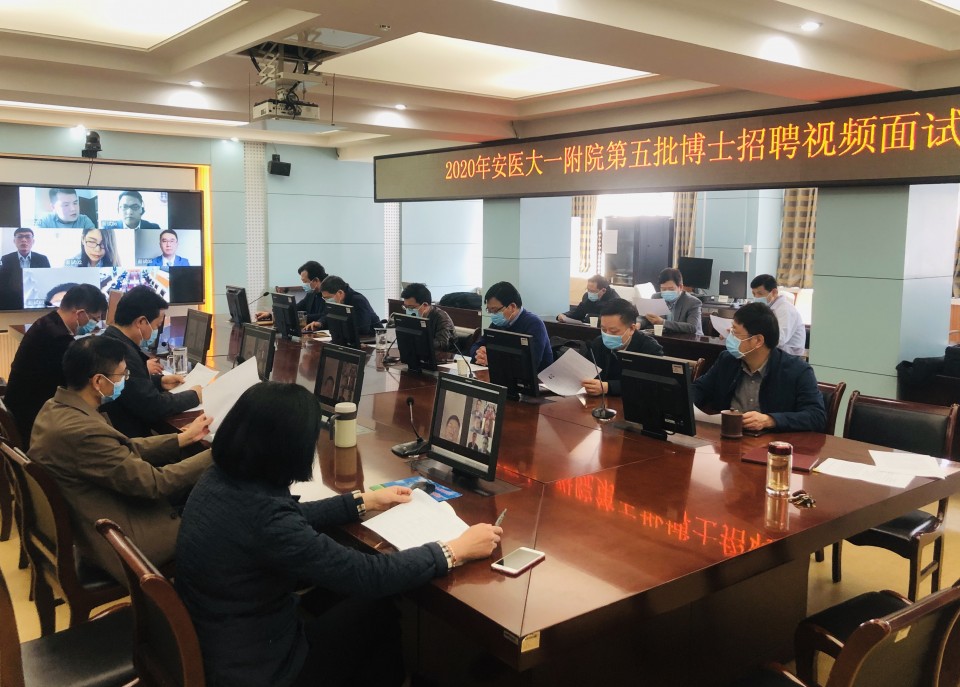 疫情防控不松懈,人才招聘不断线。为解决疫情期间人员流动困难问题,创新医院人才招聘方式,选拔高层次优秀人才,3月17日和3月24日下午,我院分别举行了两次博士招聘视频面试会,这是我院首次运用网络视频的形式在线上举行博士招聘面试。党委书记金宗祥、院长梁朝朝、常务副院长李家斌、纪委书记陈宏凯、副院长费广鹤、副院长周典、党委副书记戴晓支、副院长孙国平、党委副书记李琮及相关用人科室负责人参加了面试评议,面试由常务副院长李家斌主持。两次视频面试吸引了来自德国海德堡大学、澳大利亚昆士兰大学及塔斯马尼亚大学、美国霍普金斯医学中心及内布拉斯加大学、上海交通大学等海内外多所名校的13名博士毕业生参加。通过线上自我介绍和专业提问环节,应聘的博士人员展现出了较高的临床水平和科研能力,并与妇产科、普外科、泌尿外科和消化内科等多个科室达成了就业意向。
