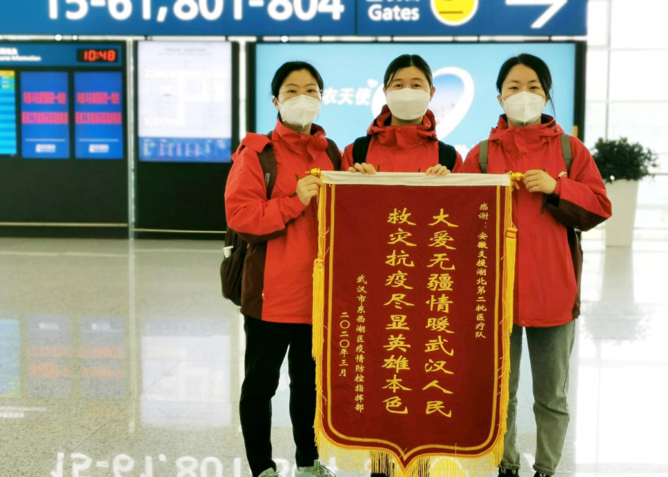 白衣执甲,逆行出征。2月3日深夜,沈霞、张婷婷、陈凤娇接到紧急通知,作为我院第三批(安徽省第二批)支援武汉医疗队成员驰援武汉,与来自全省40多个市县区的医护人员组成100人的护理队伍,进驻武汉客厅方舱医院,开展新冠肺炎患者诊疗护理工作。期间,这支护理队伍累计护理患者195例,出院患者108人次,转出患者87人次,实现了收治患者零死亡、出院患者零复发、医护人员零感染、安全生产零事故、进驻人员零投诉的“五个零”目标。三名队员不负嘱托,圆满完成了党和国家交给的任务,其中两名队员荣获武汉东西湖方舱医院授予的“先进标兵”称号。3月19日上午,三名队员从武汉凯旋,平安返回合肥。