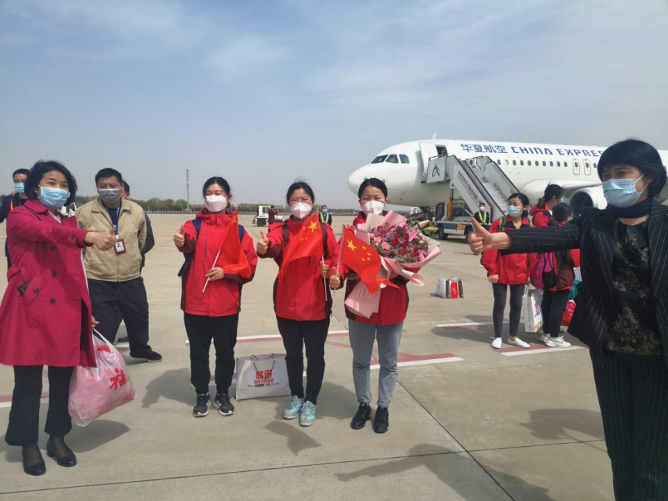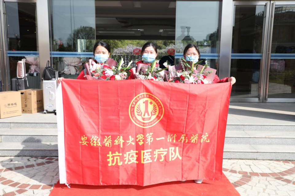 4月2日上午,我院第三批支援武汉医疗队三名队员解除14天隔离休养,护理部相关负责人前往巢湖隔离驻地迎接队员平安回家。