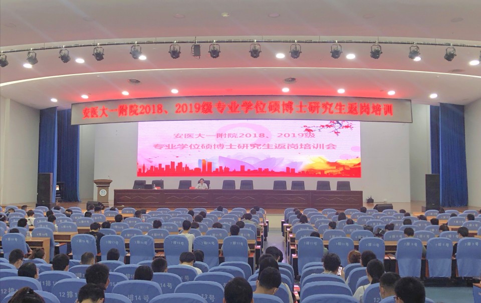 5月27日,医院会议中心召开“2018级、2019级专业学位硕博士研究生返岗培训”,安徽省援鄂第四批医疗队临时党支部书记李永怀、医院感染管理科主任丁萍分别为研究生做思想政治再教育和岗前防护培训。300余名专业学位参加培训,反响热烈。