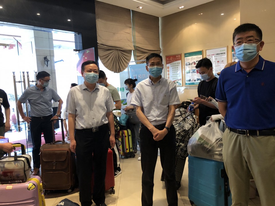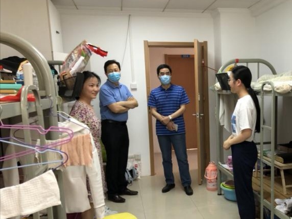 5月25日和26日报到当天,校党委副书记刘群英及校党委研工部负责人来到研究生住宿酒店,细致查看返校流程及住宿、生活情况,了解其思想和心理状态,并就后续的研究生管理工作提出要求。院党委书记金宗祥在副院长周典、院党委副书记戴晓支的陪同下,多次深入研究生住宿酒店及搬迁现场,了解各项工作情况,并与研究生作深入交流。27日晚,院长梁朝朝来到住宿酒店及规培生公寓看望返校研究生,介绍医院管理举措,并督促酒店和公寓工作人员做好安全管理工作。院党委副书记戴晓支25日晚召集研究生干部座谈会,就大学和医院相关安排及学生需求,与研究生干部进行深入交流、谈心。自5月25日起,院领导、职能部门负责人及各学科研究生导师排值,定期到研究生住宿点巡查。目前,235名专业学位硕、博士研究生已安全、有序入住酒店并完成搬迁工作,思想稳定,秩序良好。