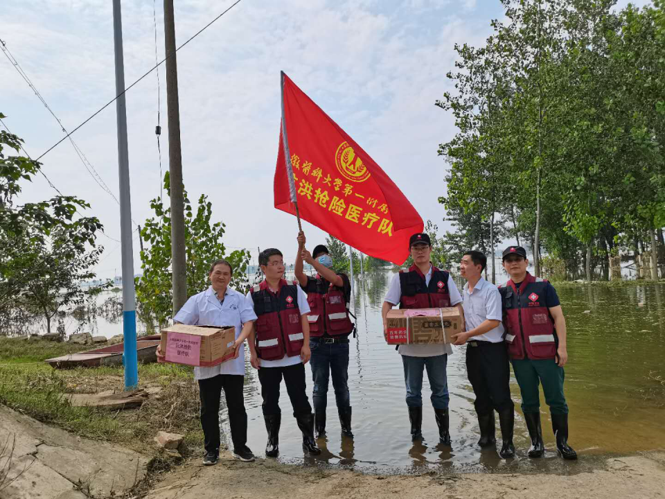 中午时分,在结束阜南县人民医院巡诊工作后,医疗队顾不上休息,马不停蹄地赶赴阜南县老观乡陡河村花门楼庄台。花门楼庄台是王家坝蓄洪后形成的湖心庄台,尽管水位稍退,但进出庄台仍需涉水步行。洪水消退时期也是疾病防治的关键阶段,医疗队现场向受灾群众捐赠了约2500元药品,义诊51人次,并与驻点医生互留联系方式,确保能够为乡亲们提供持续性的医疗服务。