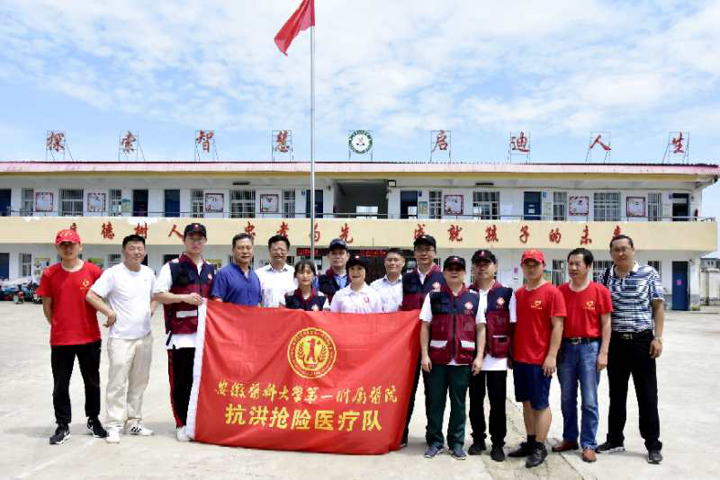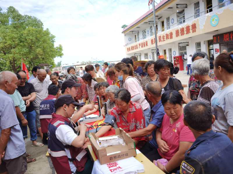8月1日,我院赴阜阳防汛救灾医疗队前往颖上县半岗镇孔岗小学和候郢小学两个安置点,为受灾群众义诊。