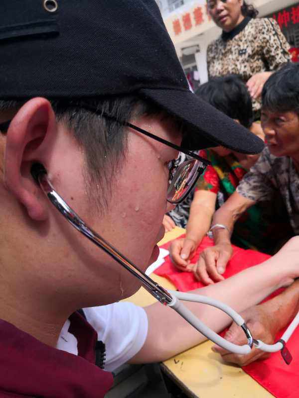 8月1日上午,医疗队员们顶着高温来到这两个安置点,为受灾群众提供义诊。听说是省城的医疗专家队来了,许多受灾群众纷纷赶了过来。医疗队为大伙持续诊疗、解答疑惑,热得汗流浃背,但想着能守护受灾群众的生命安全和身体健康,队员们一直坚持到为全部受灾群众诊疗结束。