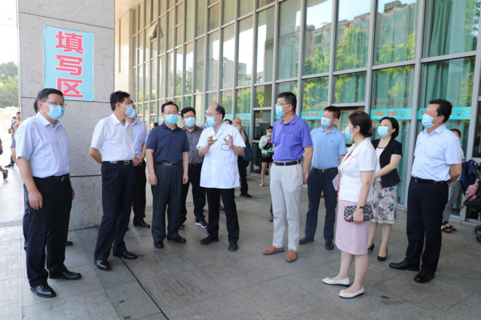 下午5时许,蒋作君一行来到我院绩溪路门诊,实地调研了我院新冠肺炎疫情三级防控情况。在发热门诊入口和核酸集中检测点,蒋作君仔细询问我院疫情期间及当前各项防护措施落实情况,详细了解住院病人和陪护人员核酸检测开展情况,并对我院疫情防控工作给予了充分肯定。