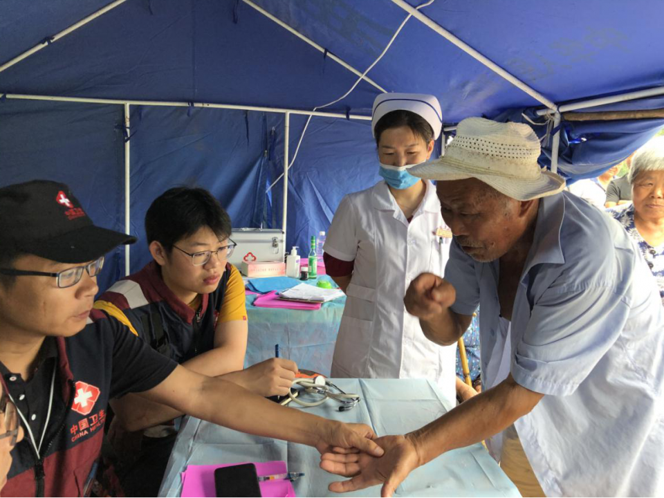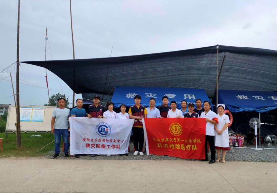 8月7日,我院赴阜阳防汛救灾医疗队带着药品、听诊器及血压计来到颍上县鲁口镇淮河大堤,为驻守大堤的防汛民工义诊。