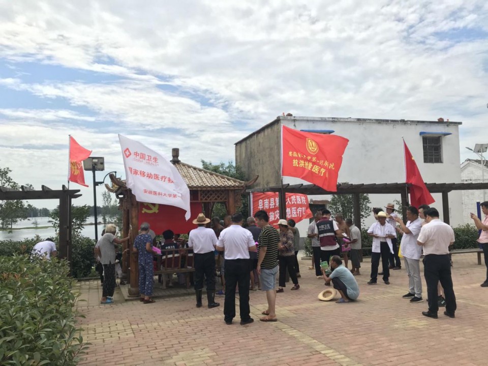 8月13日,我院第二批赴阜阳防汛救灾医疗队先后来到阜南县郜台乡两个受灾严重的庄台,为群众义诊。