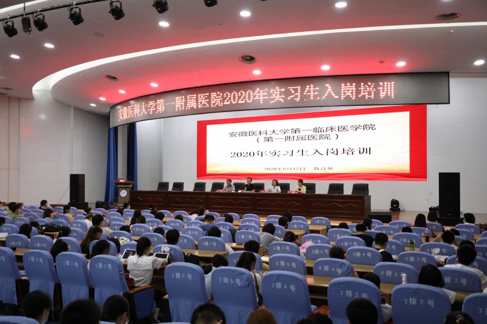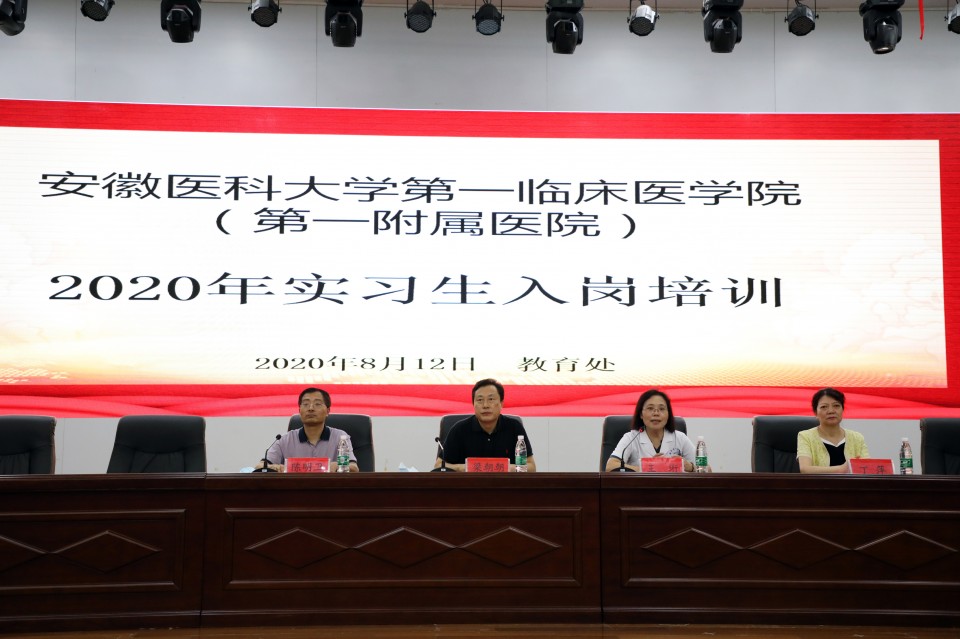 8月12日晚,医院在会议中心开展2020年全体实习生入岗培训。院长梁朝朝、副院长王珩出席会议并讲话。教育处处长陈明卫、感染管理科主任丁萍及全体实习生参加会议,会议由副院长王珩主持。