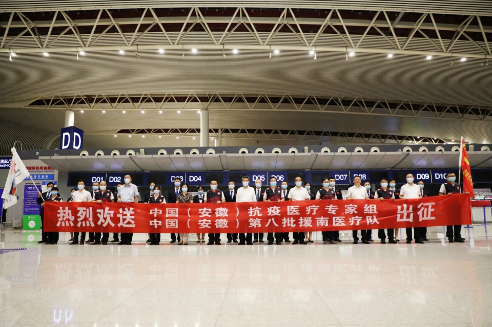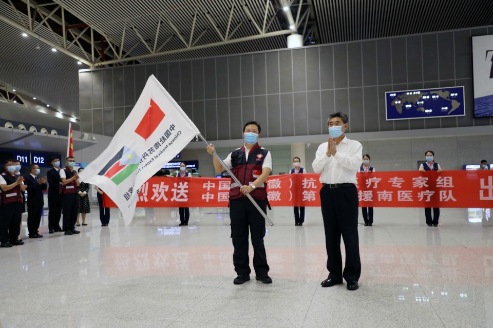 8月19日是中国第三个医师节,今天凌晨,中国(安徽)赴南苏丹和几内亚的8名抗疫专家组成员从安徽合肥新桥国际机场出发,前往当地协助指导开展疫情防控工作。这是中非团结抗疫特别峰会后中国派出的首个赴非洲专家组。安医大一附院院长梁朝朝担任中国(安徽)赴南苏丹和几内亚抗疫医疗专家组领队,我院感染病科主任郜玉峰担任专家组副领队,PICU护士长宇丽为专家组成员之一。