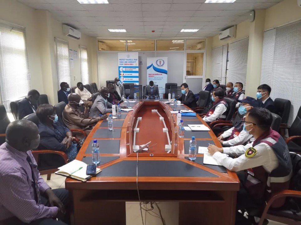 20日一大早,专家组与南苏丹应对疫情特别委员会医疗顾问小组的专家们进行对口交流,进一步了解南疫情现状、南方应对措施及面临的挑战。南方专家向中国专家详细介绍了南疫情形势及采取的系列措施,以及在能力建设、人员培训、医疗物资设备等方面存在的困难。专家组重点介绍了中国疫情防控经验,并结合南当地条件,分别从医院综合运营管理、新冠肺炎诊疗、核酸检测、发热门急诊管理、隔离病房管理和个人防护等方面提出改进意见。双方交流友好热烈,南方感谢中方专家组毫无保留地分享中国疫情防控经验和做法。