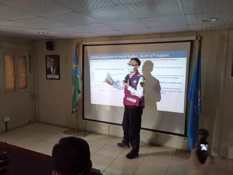 8月23日上午,中国驻南苏丹使馆举行中国援南抗疫医疗专家组防疫培训会暨第七次在南中国机构企业疫情联防联控工作会议,邀请专家组为在南中资企业、援南医疗队、援外项目组、中国籍国际职员等传授新冠肺炎疫情防控知识。中电建、中原石化、中港湾等部分单位代表到现场参会,其他参会单位和人员以视频方式参会。
