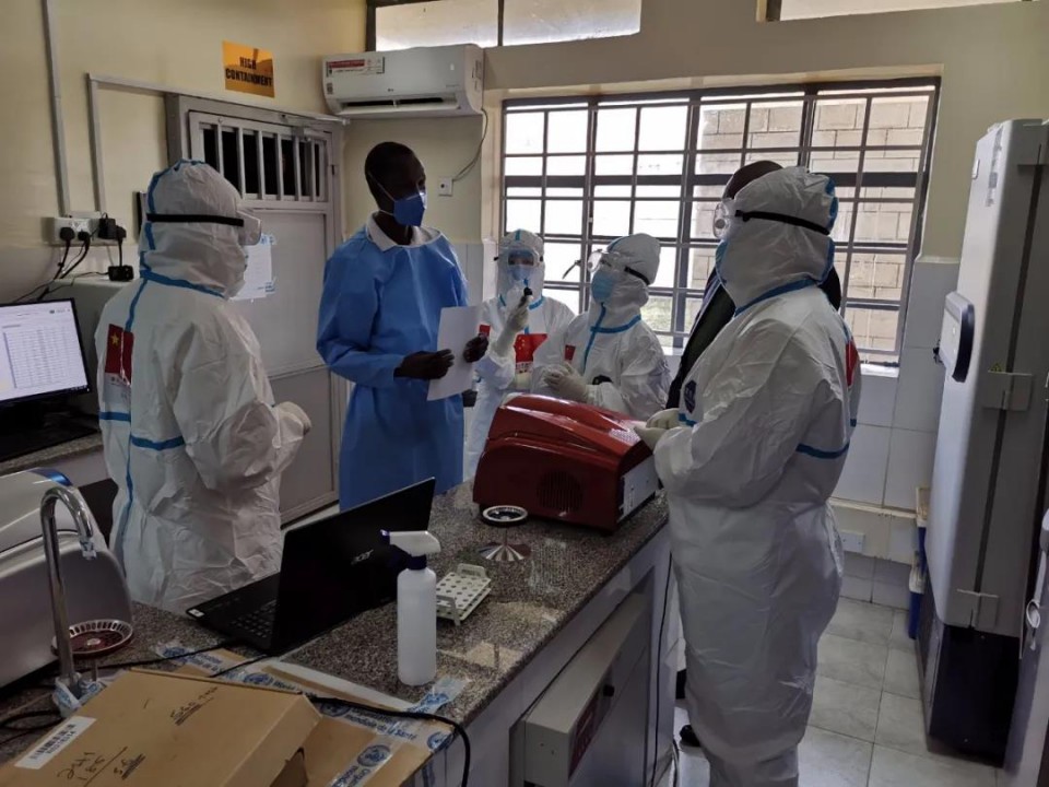 21日上午,专家组不顾朱巴炎热气温,穿上厚厚的防护服,在华宁大使陪同下,实地走访南最主要的新冠病毒检测机构-国家公共卫生实验室及南唯一的新冠肺炎治疗机构-加朗传染病中心,全面了解、评估南检测和治疗能力,并就实验室管理、核酸检测方法、诊疗和治疗方案、个人防护等与南医护人员进行交流。针对考察南公共卫生实验室时发现的一些问题,专家组建议严格划分实验室清洁、半污染、污染区,将管理区和实验区分隔,人流、物流实现分离,建立单一流向的实验室操作流程,实行空气消毒等措施,强化室内、室间质控,提高工作人员防护水平。