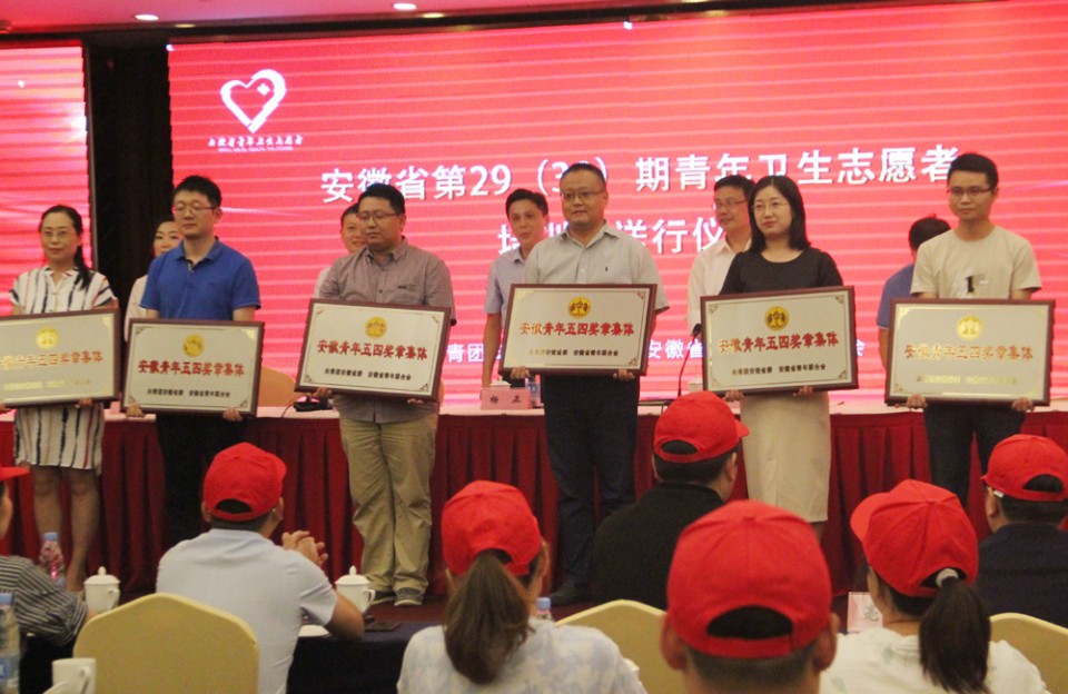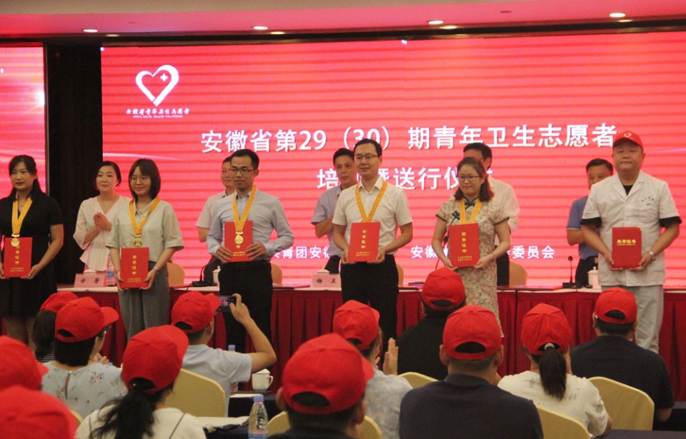 8月25日,团省委、省卫健委第29(30)期青年卫生志愿者培训暨送行仪式在肥举办。团省委书记杨正出席并为青年卫生志愿者代表授旗,省卫生健康委副主任吴振宇、团省委副书记单强出席送行仪式。会上,我院重症医学科主管护师刘钢、团委书记黄尧分别作为第23届“安徽青年五四奖章”个人和集体代表上台接受颁奖。我院第27、28期青年卫生志愿者徐汉江、张翰元还荣获“安徽省优秀青年卫生志愿者”荣誉称号。第29、30期青年卫生志愿者郭泽、王杨从团省委书记杨正手中接过青年卫生志愿者旗帜,标志着全省第29(30)期青年卫生志愿者正式派驻启动。