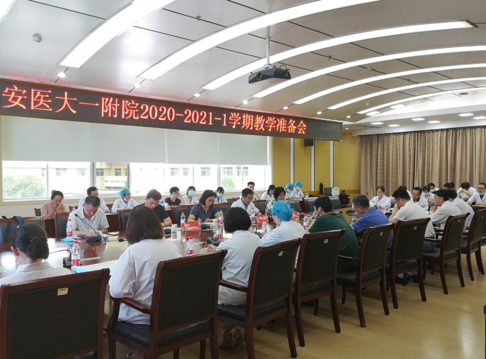 8月28日上午,医院在干部二楼会议室召开新学期教学准备会,副院长王珩、教育处相关负责人、全体教研室主任、教研室秘书及教育处全体工作人员参加会议。会议由副院长王珩主持。教育处处长陈明卫首先向大家传达学校新学期教学准备会精神,副处长王继年通报上学期整体教学情况及本学期教学要求,并简要强调了教研室工作任务、教师试讲管理规定和教学查房规范等。临床实践教育科科长高敏宣读了《关于表彰安徽医科大学第一附属医院2019年度优秀教研室的决定》,布置新学期临床实践教学及MBBS教学任务,并对相关要求做了强调。各教研室负责人就教学工作中遇到的问题进行发言,有关负责人现场给予回答。