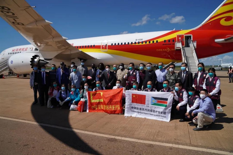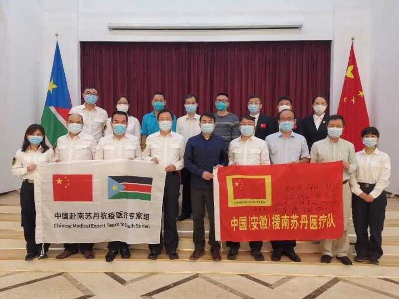 9月6日,中国抗疫医疗专家组圆满完成在南苏丹和几内亚两国抗疫任务,在南首都朱巴乘机回国。中国(安徽)第七批援南医疗队同机回国。华宁大使,南苏丹卫生部长伊丽莎白、次长马楚特、驻华大使杜库、外交部中国司司长多米尼克等到机场送行。伊丽莎白部长代表南政府向专家组和医疗队成员颁发感谢证书。