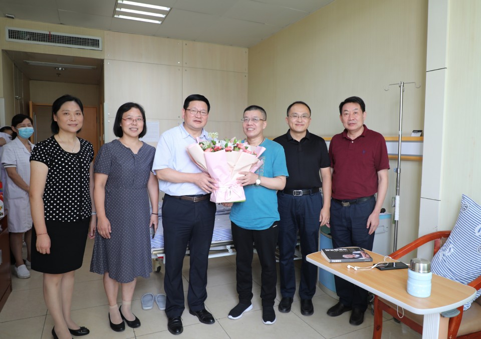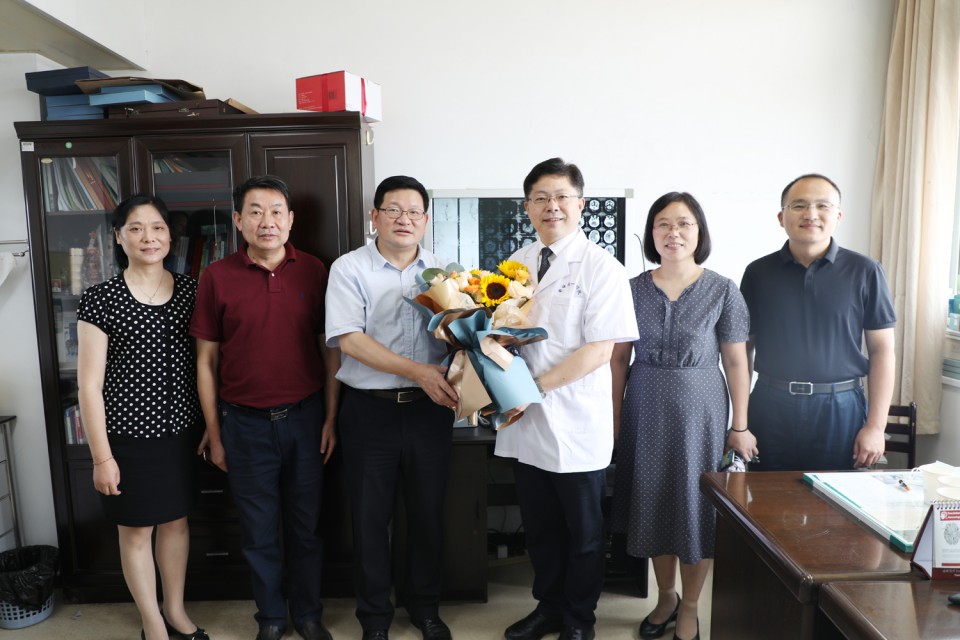 顾家山书记首先向教师代表献上了鲜花和祝福,向我院教师、教育工作者致以最诚挚的节日问候,充分肯定了医院在大学医学教育中的重要作用,并对医院在抗击疫情中所作的突出贡献表示高度肯定和赞扬。顾家山与慰问教师代表就大学医学教育发展问题展开了深入交流,强调要更加重视提升学校及医院的高层次人才培养能力及优质医疗服务供给能力。借助大学新医科中心建设的契机,坚持做全、做强、做优学科建设,并在发扬一附院优良传统的基础上,进一步完善制度规范,不断提高临床诊疗水平及教学水平,培养更多临床基础扎实、业务能力精湛的临床医师和年青教师。最后,顾家山书记希望一附院要继续做好大学附属医院乃至全省公立医院的领头羊,勉励一附院广大教职员工继续做治病救人与教书育人并重、好医生与好老师兼优的良好典范。