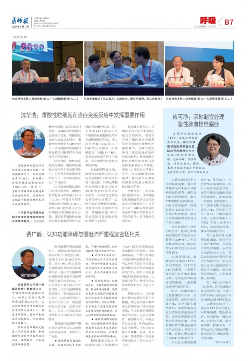 此次大会也受到各大媒体的关注,《医师报》对费广鹤教授题为《认知功能障碍与慢阻肺严重程度密切相关》的报告做了专题报道。