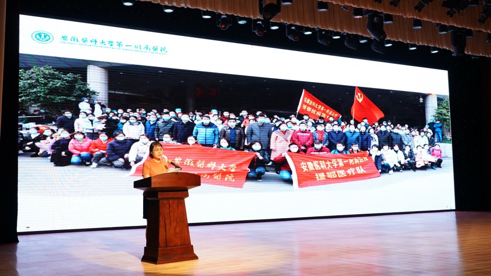 9月18日下午,在安徽老年大学2号楼报告厅,我院高新院区副院长、第五批支援湖北医疗队领队、急诊医学科主任医师张泓参加全省“同心抗疫 皖美留芳”先进事迹报告团,宣讲我院抗疫先进事迹,省直及中央驻皖单位党员、干部代表现场聆听报告。