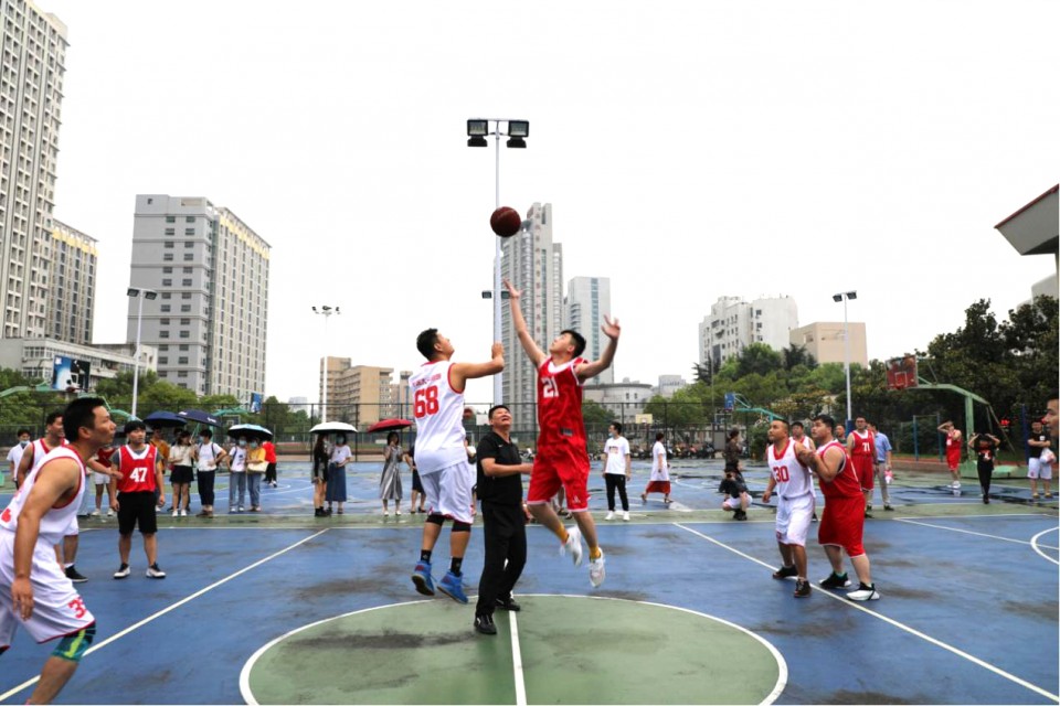 为迎接医院“两代会”的召开,活跃我院职工业余文化生活,进一步增强职工凝聚力,提升我院篮球爱好者的竞技水平,9月11日至18日,我院在安徽医科大学体育场举办第十届职工男子篮球比赛。院党委书记金宗祥宣布安徽医科大学第一附属医院第十届职工男子篮球比赛正式开始并为比赛开球,院工会主席常进主持开幕式,各参赛代表队队员、裁判员、教练员、全体工会人员参加了开幕式。
