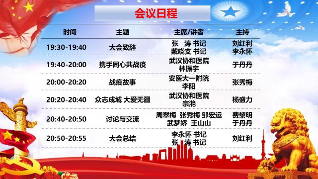戴晓支首先表达了对武汉人民及武汉协和医院疫情期间无私奉献、英勇抗疫的高度赞扬,对他们给予我院医疗队工作和生活上的支持表示感谢,对本次线上支部共建活动表示大力支持和推崇,并勉励广大党员要把抗疫精神发扬和传承下去。