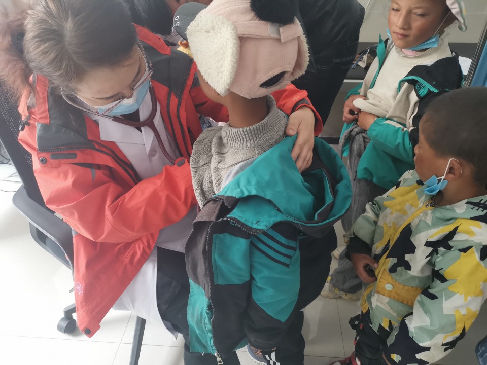 在浪卡子县,由于海拔较高,专家组出现胸闷、头疼等高原反应,为按时完成任务,专家组等不及就餐,稍作休息后便投入忙碌有序的筛查工作。经过将近4个小时的连续工作,专家组完成了对浪卡子县的幼儿园、小学和初中共100名疑似患儿的筛查,对其中听诊和彩超均提示异常的患儿,专家组进行了严格细致的讨论,并给出了针对性的诊疗意见。筛查过程中,2019年在我院成功实施先心病手术的两名患儿跟随家长,专程来筛查点看望专家们,孩子们紧紧拉着专家的手,稚嫩的童声喊着“谢谢医生叔叔,谢谢医生阿姨”,场面令人动容。