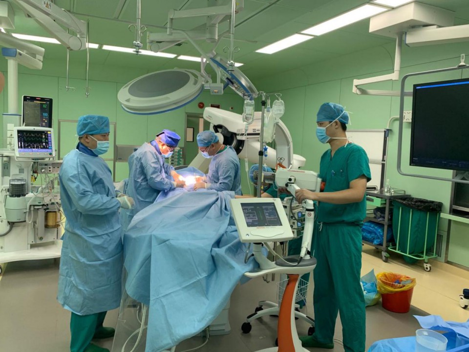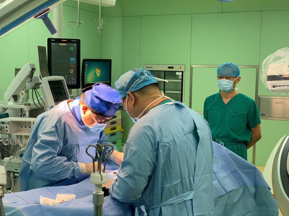 9月27日,高新院区杂交手术间经三个月的快速筹备改造正式投入使用。心脏大血管外科葛圣林主任医师团队与介入科、中心手术室、麻醉科等多部门协作,率先在该手术室为一名“突发胸背部撕裂样疼痛16小时”的71岁男性患者成功开展胸主动脉覆膜支架腔内隔绝术。手术历时50分钟,手术切口小(不足3cm)、出血少(约10ml),患者苏醒后安全返回病房,目前恢复良好。副院长、高新院区院长孙国平,高新院区副院长陈旭林等一行赴手术室现场指导工作。