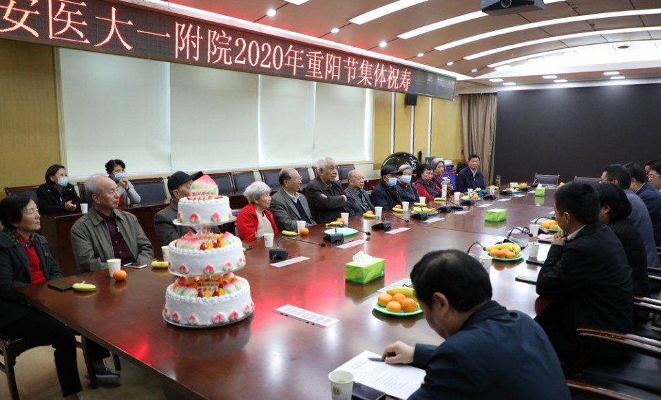 在重阳佳节到来之际,10月25日下午,医院在干二会议室举行一年一度的“敬老月”集体祝寿活动,为今年80周岁的老寿星们恭贺生日。院领导梁朝朝、戴晓支及相关部门负责人等参加。院长梁朝朝代表医院在祝寿仪式上致辞,党委副书记戴晓支主持祝寿仪式。