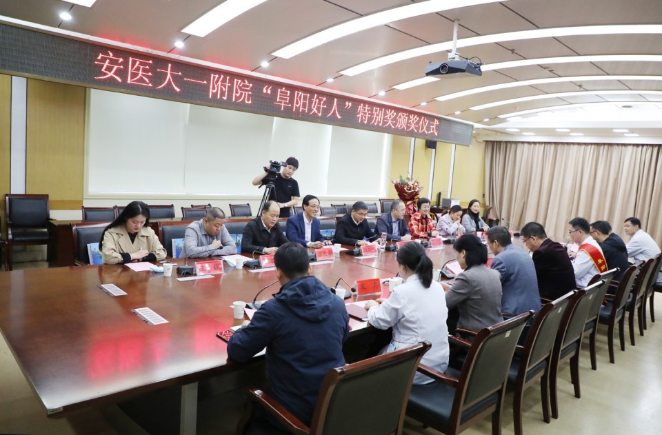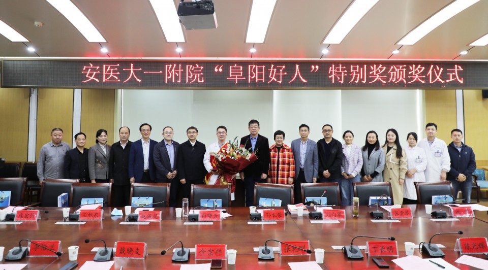10月30日下午,安医大一附院 “阜阳好人”特别奖颁奖仪式在医院干二会议室举行。阜阳市委常委、宣传部部长白晓云为阜阳籍的我院青年医生张礼刚颁发荣誉奖状。院党委书记金宗祥参加会议并致辞。