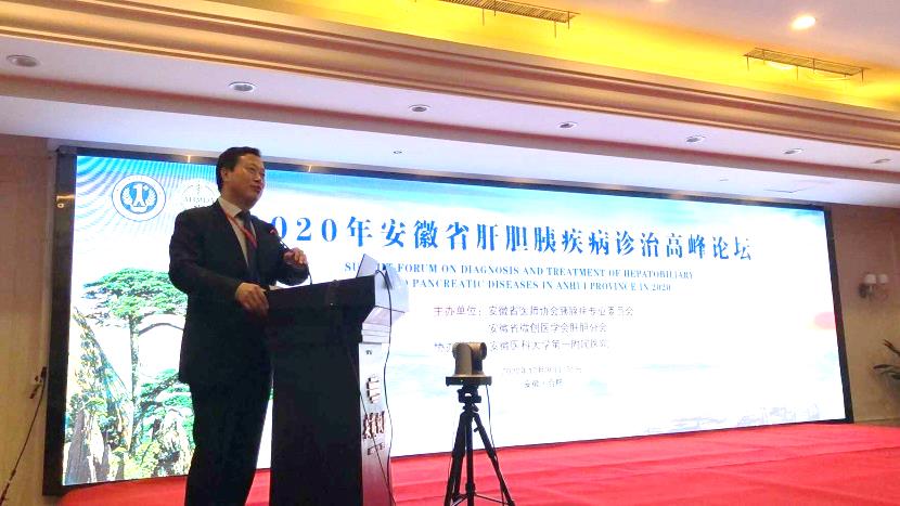 10月30-31日,2020年安徽省肝胆胰疾病诊治高峰论坛在合肥召开。本次论坛由我院肝胆胰外科一病区主办,采用线上和线下、理论与实践相结合的模式,以手术直播、技术分享、专家讲座、线上线下互动等形式呈现,安徽省医师协会会长、安徽医科大学第一附属医院院长梁朝朝教授出席开幕式并讲话,会议由我院普外科行政副主任、肝胆胰外科一病区主任钱叶本教授、病区副主任张超教授主持,400余名省内外肝胆胰外科同道们参加了会议。