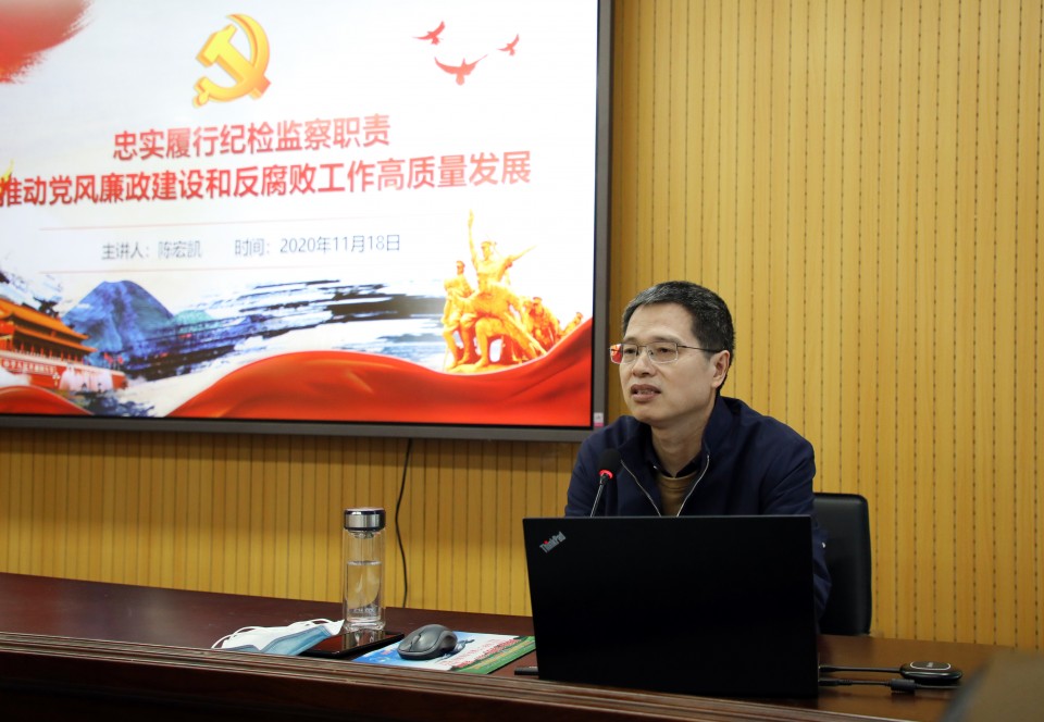 11月18日下午,纪委书记陈宏凯在行政楼第三会议室,为所在的机关第一党支部及联系的神经内科党支部全体党员,讲授了题为《忠实履行纪检监察职责 推动党风廉政建设和反腐败工作高质量发展》的党课。