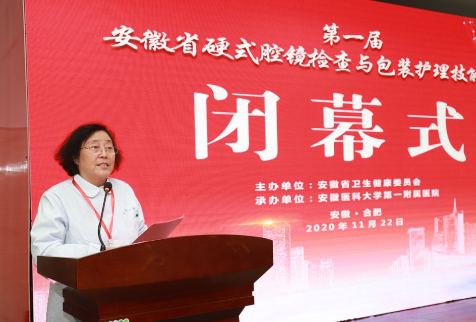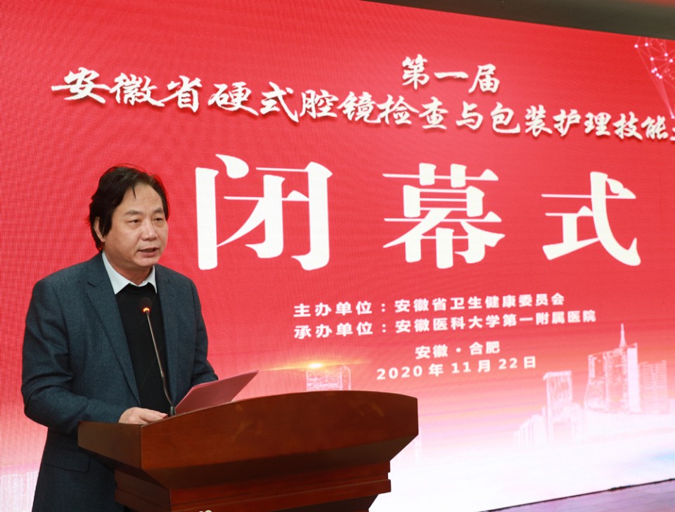 在最后的闭幕式环节,副院长孙国平致闭幕辞,中华护理学会消毒供应专业委员会副主任委员李淑玲对各位选手的表现给予了全面、深刻的点评,安徽省护理学会秘书长李志菊宣读比赛结果,并举行了激动人心的颁奖仪式。安徽省护理学会理事长武义华在总结讲话中,充分肯定了各参赛单位及选手的优秀表现,对全省今后的消毒供应护理工作提出了希望和要求。