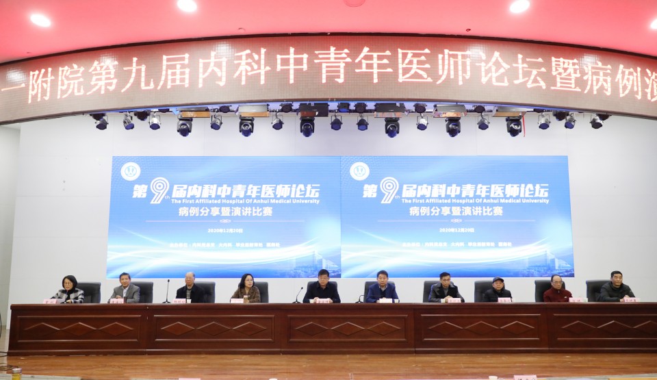 12月20日,由内科党总支、大内科、毕业后继续教育处及医务处共同主办的安医大一附院第九届内科系统中青年医师论坛病例分享暨演讲比赛在内科医技楼4楼会议中心举行。院党委书记金宗祥、副院长费广鹤、副院长王珩、党委副书记戴晓支、相关职能部门负责人及特邀嘉宾等出席会议。来自全院、合肥市内以及亳州、安庆地区的400余名医务人员参加了本次论坛。