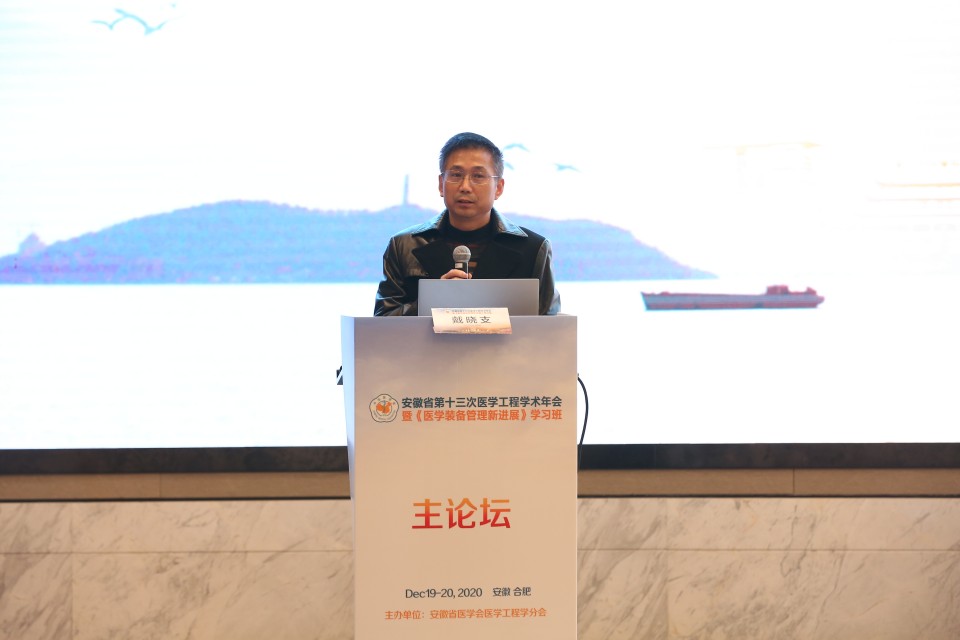 为推动安徽省医学工程学科发展,促进我省医学工程人员之间的学术交流,12月18日至20日,安徽省第十三次医学工程学术年会暨“医学装备管理新进展”学习班在合肥市召开。本次学习班采取线上线下相结合的方式进行,来自省内外近400名医工行业的专家、代表参会。省医学会秘书长王学东、我院党委副书记戴晓支出席开幕式并致辞。会议由省医学会医学工程学分会副主任委员、我院物资设备处副处长张晓斌主持。