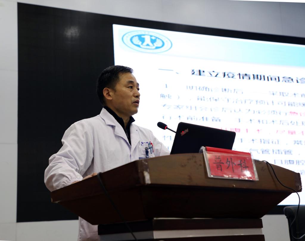 随后,金宗祥宣布新冠疫情防控应急演练开始。医务处副处长高潮兵宣读演练案例,并主持演练汇报,预检分诊、发热门诊、隔离病房、急诊科、普外科、麻醉科、手术室、消毒供应中心、检验科、保卫处、总务处等相关部门和科室依次汇报本部门和科室应急处置情况,之后感控委员会成员和专家就演练中亮点、不足、改进措施进行点评。
