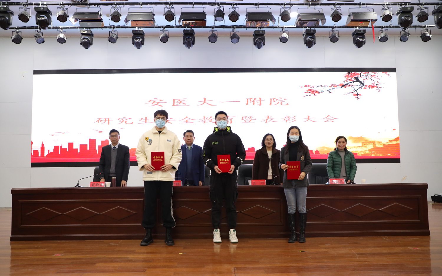 1月22日下午,医院在会议中心召开研究生安全教育暨表彰大会,副院长费广鹤、副院长王珩、党委副书记戴晓支、研工部副部长赵嘉芸出席会议,会议由党委副书记戴晓支主持。