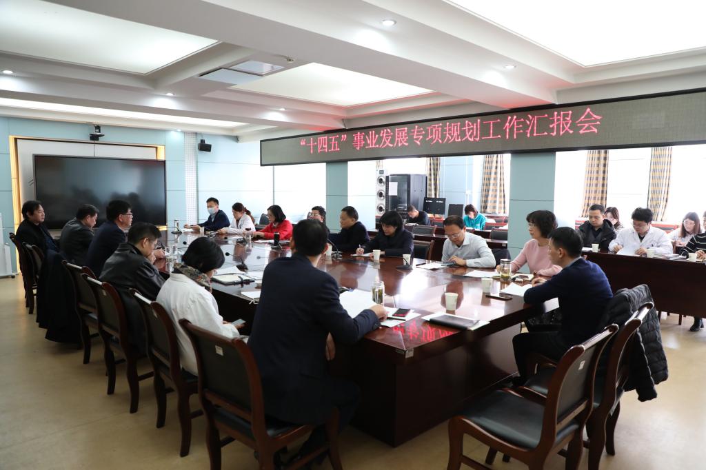 1月29日上午,医院在行政楼五楼第二会议室召开“十四五”事业发展专项规划工作汇报会。院党委书记金宗祥、常务副院长李家斌、副院长费广鹤、周典、党委副书记戴晓支、副院长孙国平,各相关职能处室负责人及工作人员参加会议,会议由党委副书记戴晓支主持。