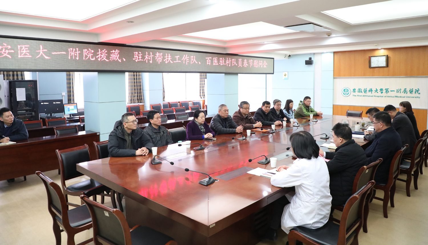 2月8日,医院在行政楼第二会议室召开医院援藏医疗队、驻村帮扶工作队、百医驻村队员慰问座谈会。院党委书记金宗祥、常务副院长李家斌和相关职能处室负责人参加会议。座谈会由党委副书记戴晓支主持。