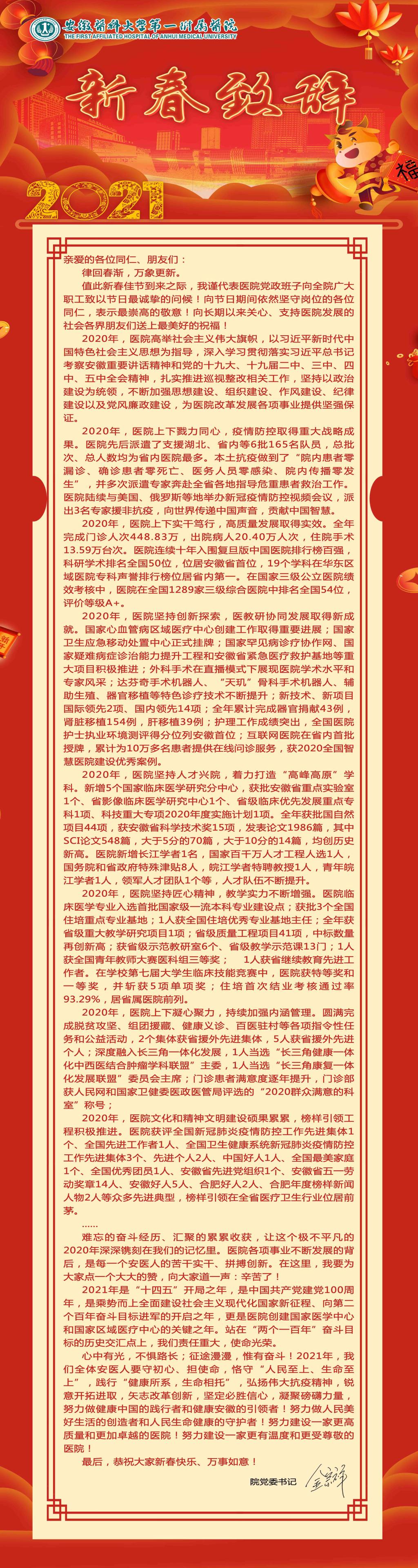 安医大一附院2021新春致辞