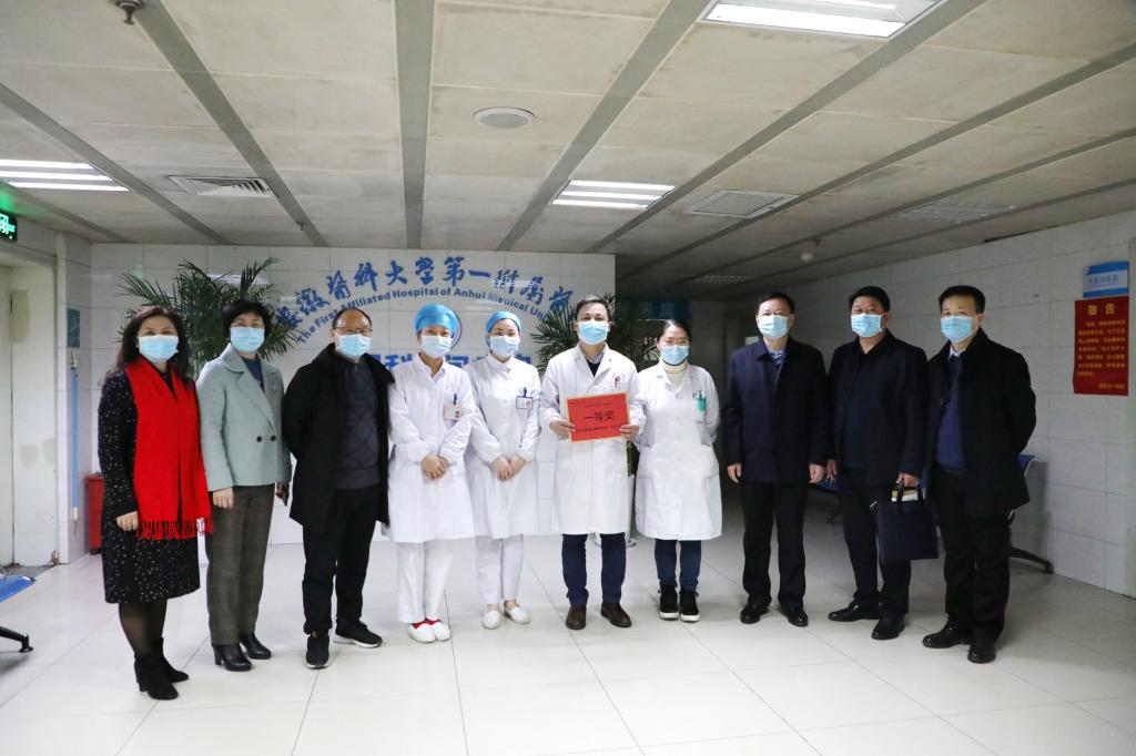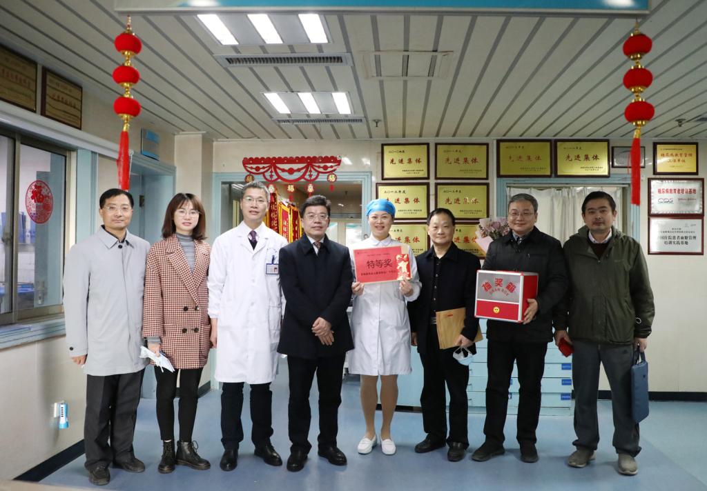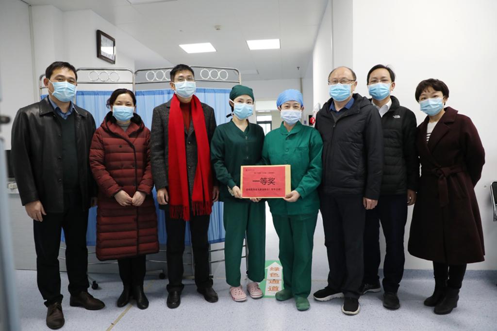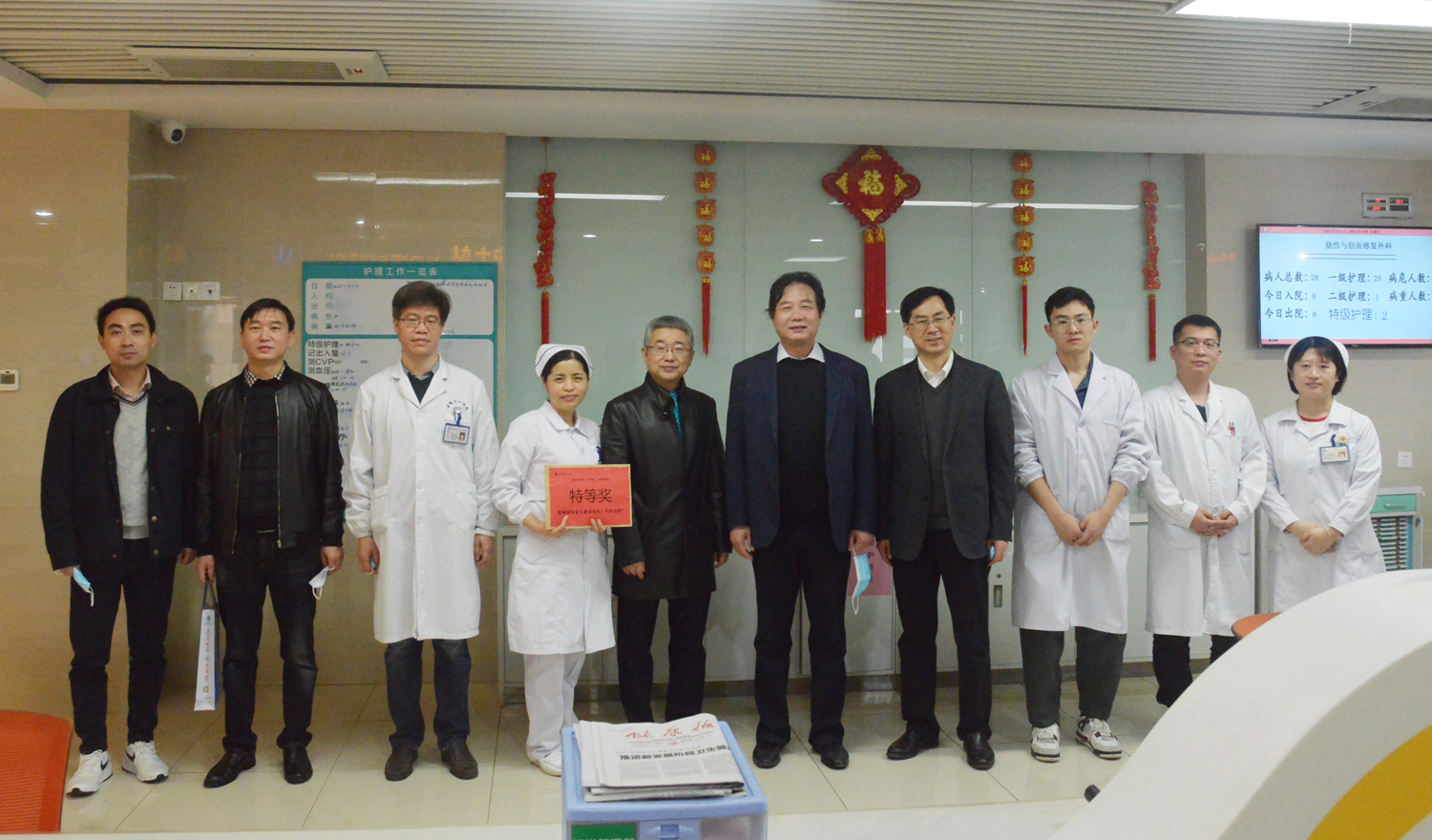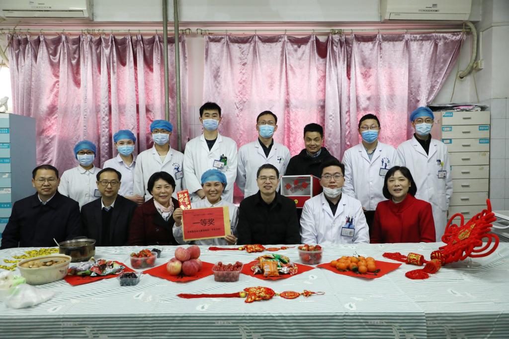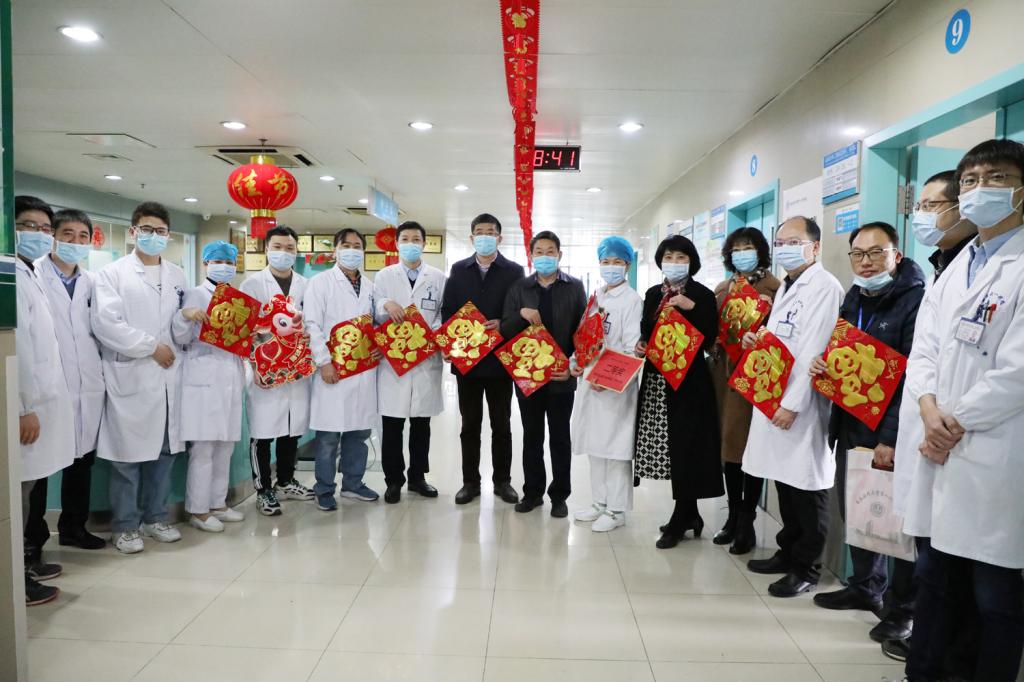 2月12日(大年初一)上午,院领导金宗祥、李家斌、陈宏凯、费广鹤、周典、戴晓支、孙国平及相关职能处室负责人,赴临床、医技、后勤、门诊等部门,慰问节日期间坚守在一线的广大医护员工和实习同学。