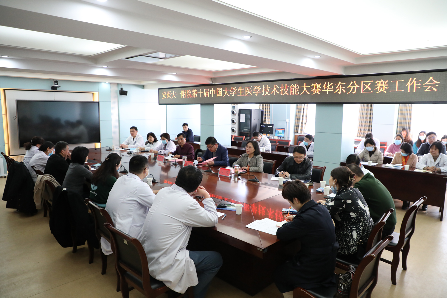 2月20日,医院在行政楼第二会议室召开第十届中国大学生医学技术技能大赛华东分区赛工作推进会,院党委书记金宗祥、副院长王珩出席会议并讲话,教育处处长陈明卫、各教研室负责人及相关工作人员参加会议。会议由副院长王珩主持。