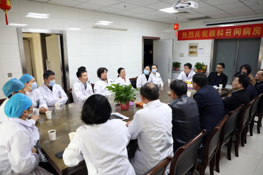 2月24日下午,院党委书记金宗祥、常务副院长李家斌、副院长费广鹤、周典赴眼科调研。医院相关职能处室负责人、眼科全体医护人员参加。