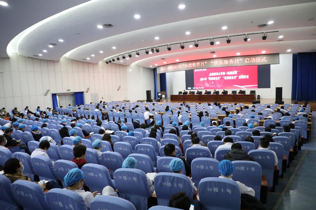 3月3日下午,医院在会议中心举行2021年“医德教育月”和“优质服务月”启动仪式。院党委书记金宗祥发表讲话,常务副院长李家斌主持会议。副院长费广鹤、周典、王珩、党委副书记戴晓支、副院长孙国平以及职能部门负责人、临床医技科室负责人、护士长、党总支书记、支部书记参加了启动仪式。